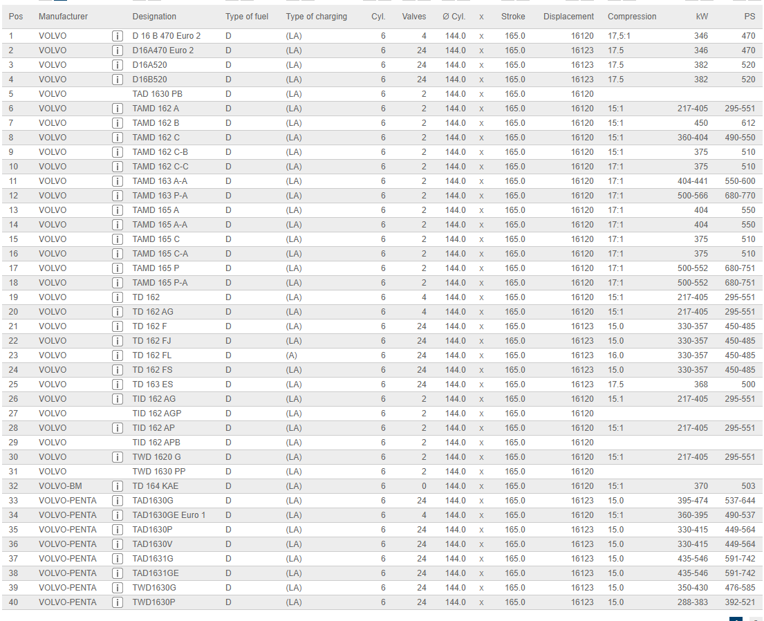 مشخصات فنی ياتاقان ثابت ولوو FH16 (سایز اول)