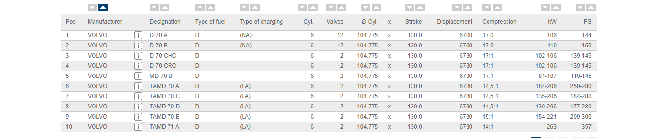 مشخصات فنی ياتاقان متحرک دوم ولوو TD-70