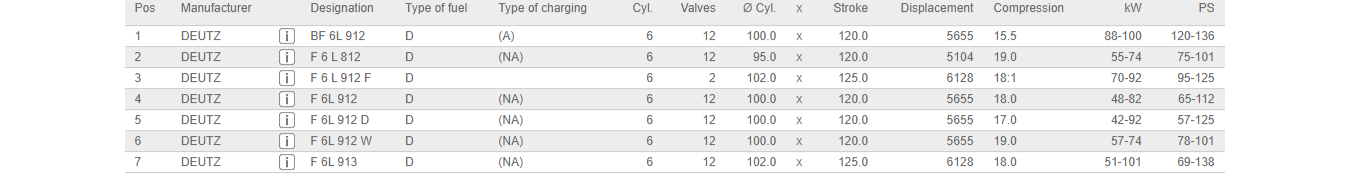 مشخصات فنی بوش شاتون دیزل موتور دویتس F6L912W