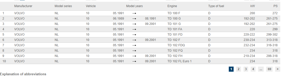 مشخصات فنی ياتاقان متحرک کامیون ولوو N10 قديم (سایز 025)