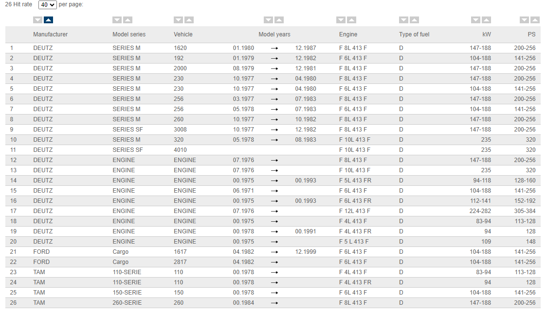 مشخصات فنی بوش وپيستون موتور دیزل دویتس (F10L413F)