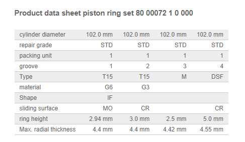 این رینگ موتور دیزل دویتس علاوه برای موتور Deutz برای انواعی از ماشین های آگرل، لیبهر و فندت نیز قابل استفاده است.