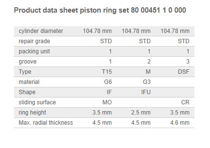 مشخصات فنی رينگ موتور ولوو D7A (سایز STD)