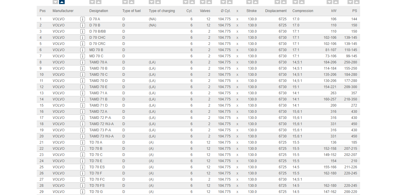 مشخصات فنی سيت سوپاپ اگزوز ولوو D7 (تعميري)