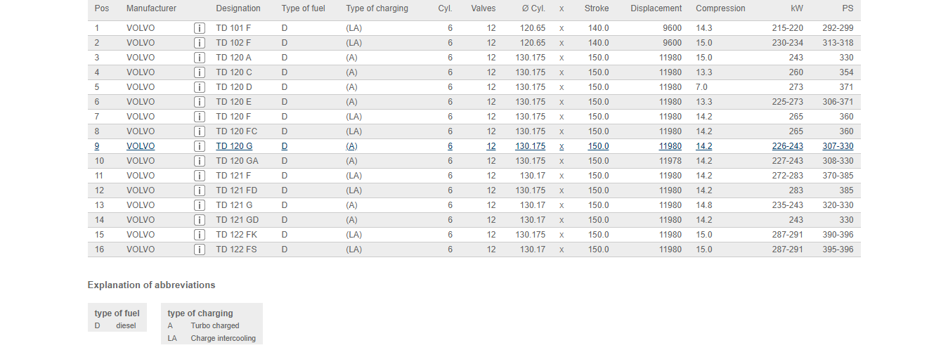 پمپ آب ولوو مدل 50005602 مناسب برای موتور های TD F، TD100 و TD120 و غیره است. شما می توانید در ادامه در تصویر قرار داده شده انواع مدل موتور های ولوو مناسب برای این واتر پمپ BF را مشاهده نمایید.